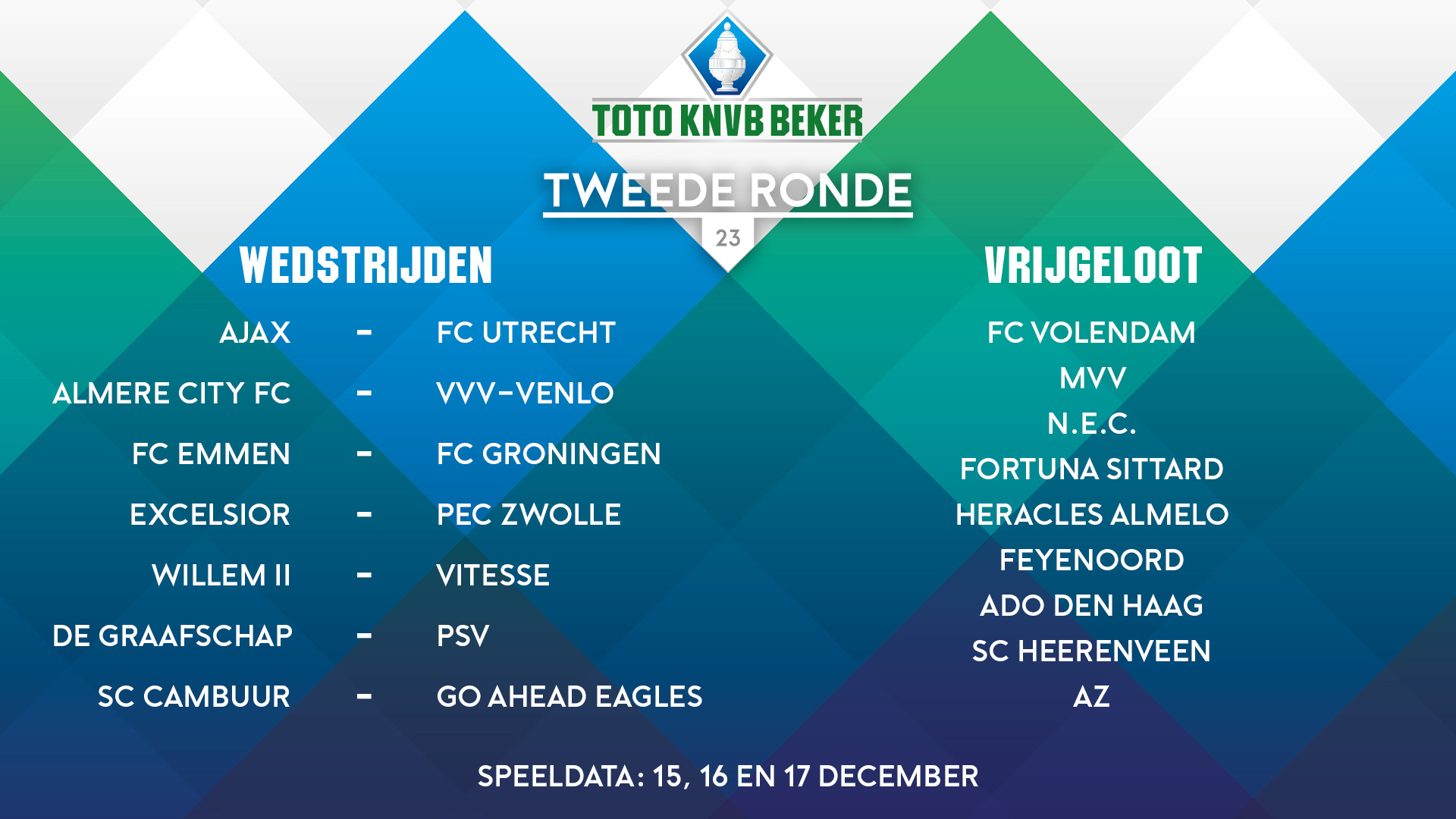 De TOTO KNVB Beker is de beker van heel Nederland. Dit is de eerste ronde waaraan ook de bvos zullen deelnemen Ajax PSV AZ Feyenoord en. 64 clubs treffen elkaar in de tweede ronde van het toernooi waarin de mooiste voetbalverhalen worden geschreven.